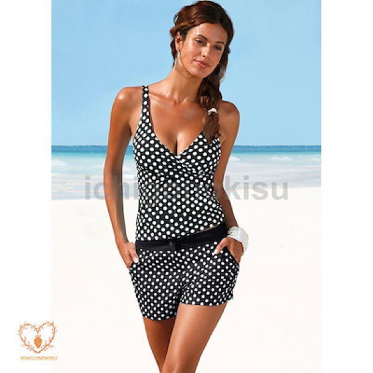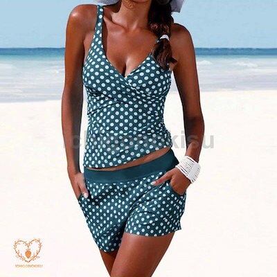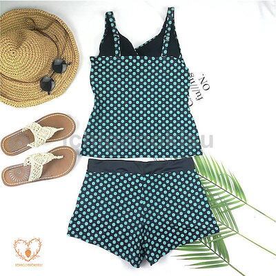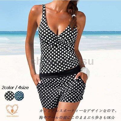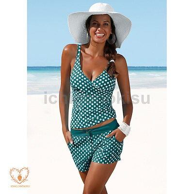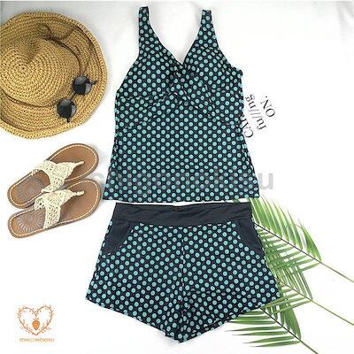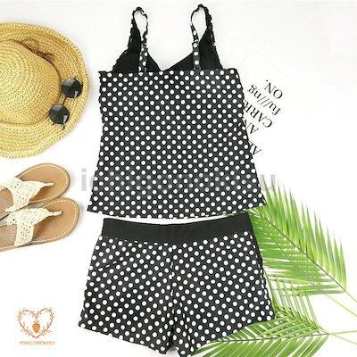 ポルカドット水玉 タンキニ ポルカドット セット 体型カバー 水着レディース セパレート ビキニ Vネック ハイウエスト タンクスーツ 大きいサイズお洒落 ショートパンツ