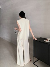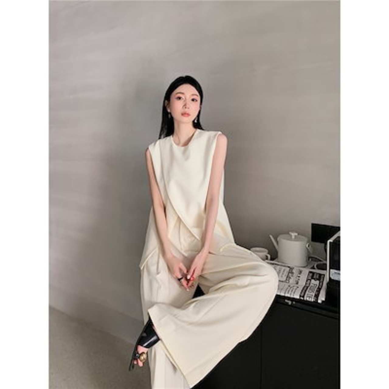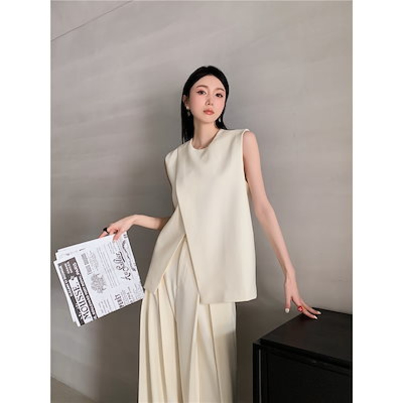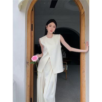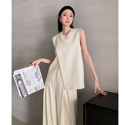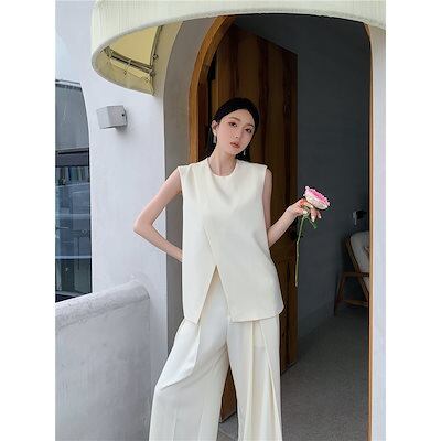 夏 セットアップ スーツ ベスト シャツ ワイドパンツ ストレート シャツ 気質 通勤 着やせ 韓国ファッション レディース ゆったり
