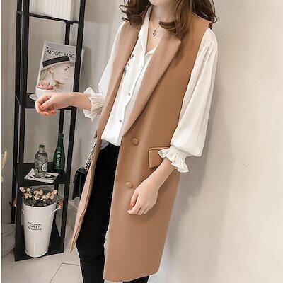 初春 冬アウター 秋トレンチコート 秋ジャケッ ベスト韓国ファッションノースリーブ秋ロング丈ベスト 通勤 百掛けスーツベスト