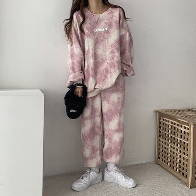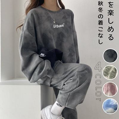 春人気 セットアップ長袖 スウェット レディース ゆったり スポーツスーツ 韓国ファッション 大きいサイズ 着痩せ T シャツ 上下セット ルームウェア 部屋着トップス+パン