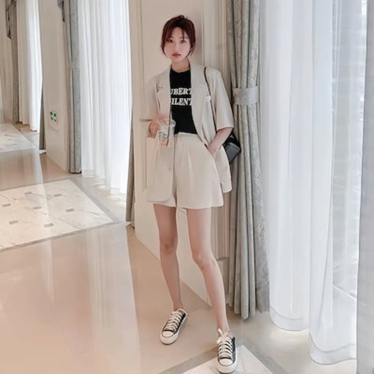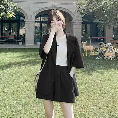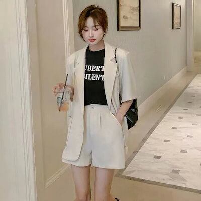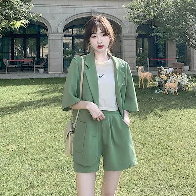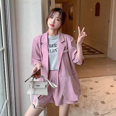 【人気】 夏 スーツセット 上下2点 スーツコート+ショートパンツ レディース セットアップ カジュアル スーツ 通勤 体型カバー