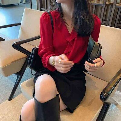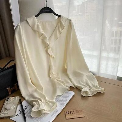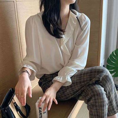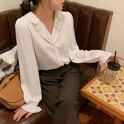 ブラウスvネックvネックフォーマルボウタイトップスシフォンブラウスラッフルカラーシフォンオフィスシフォンブラウスレディース長袖スーツ