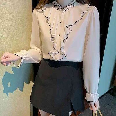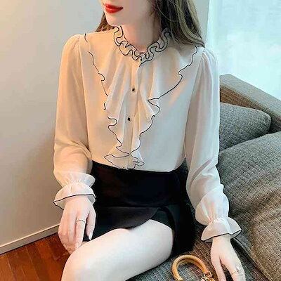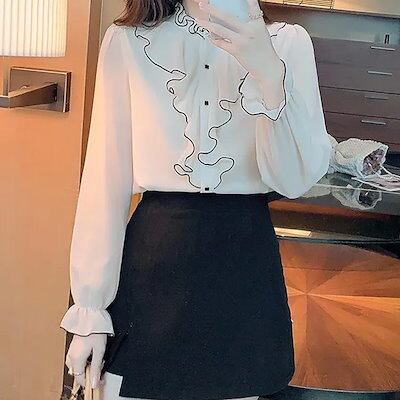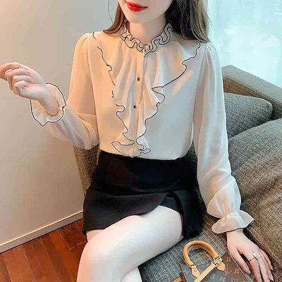 シフォンブラウススーツインナーフリルスーツフォーマルブラウストップスボウタイシフォンオフィス立ち襟レディース長袖シフォンブラウス