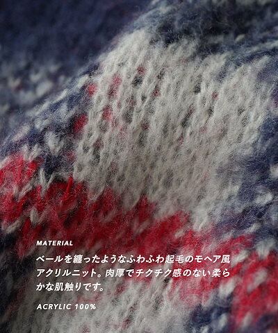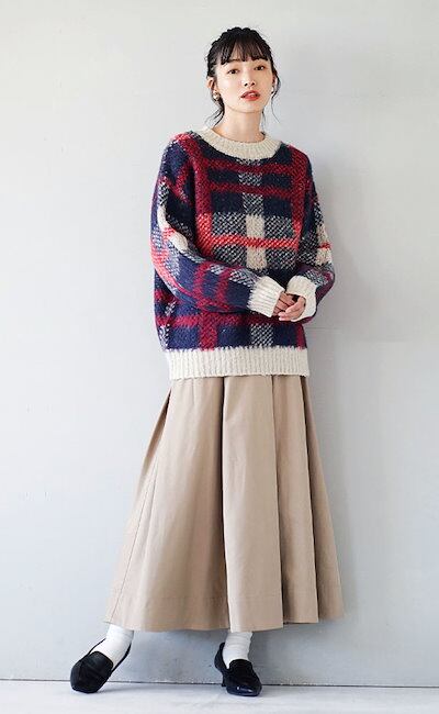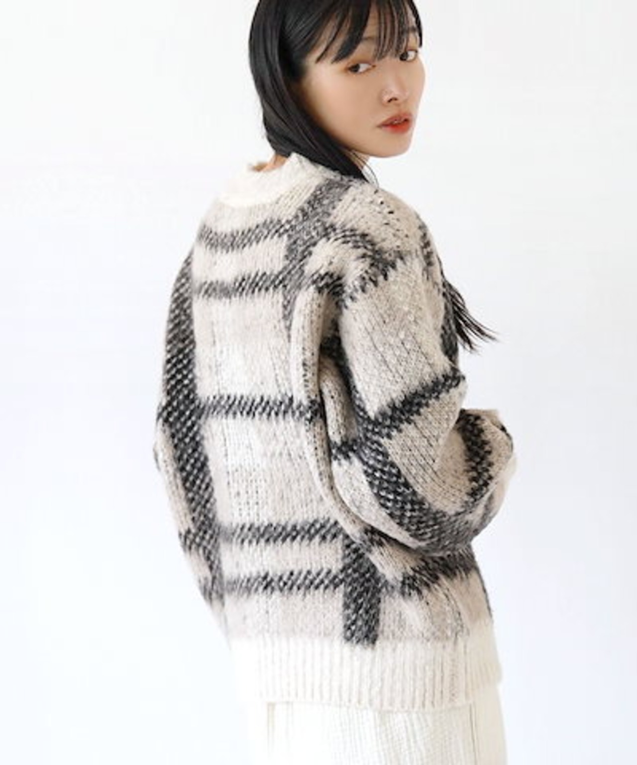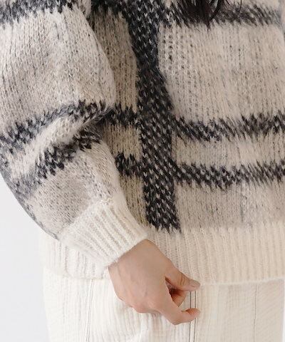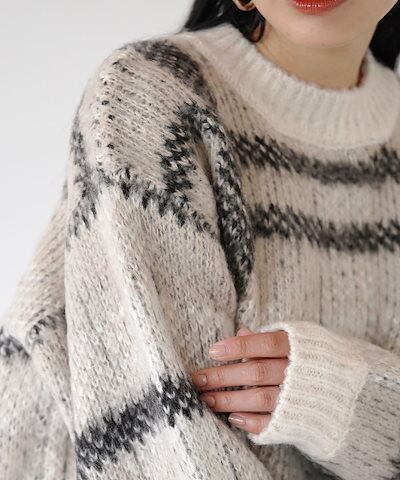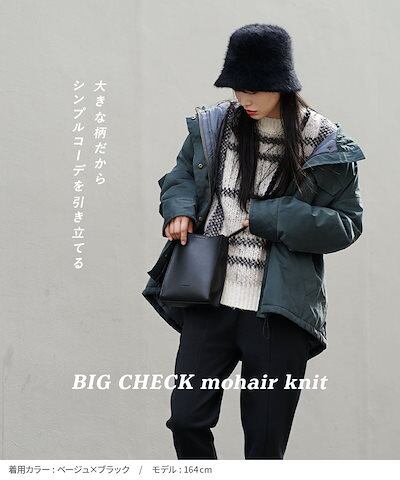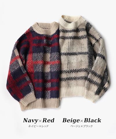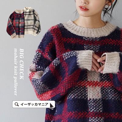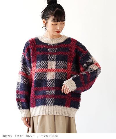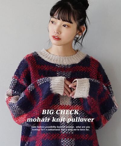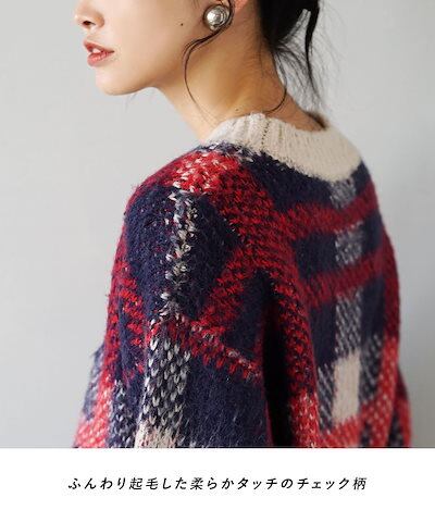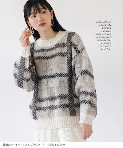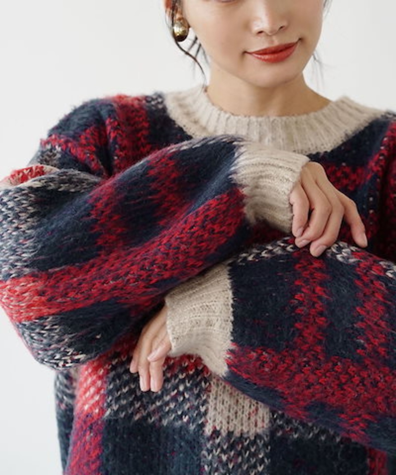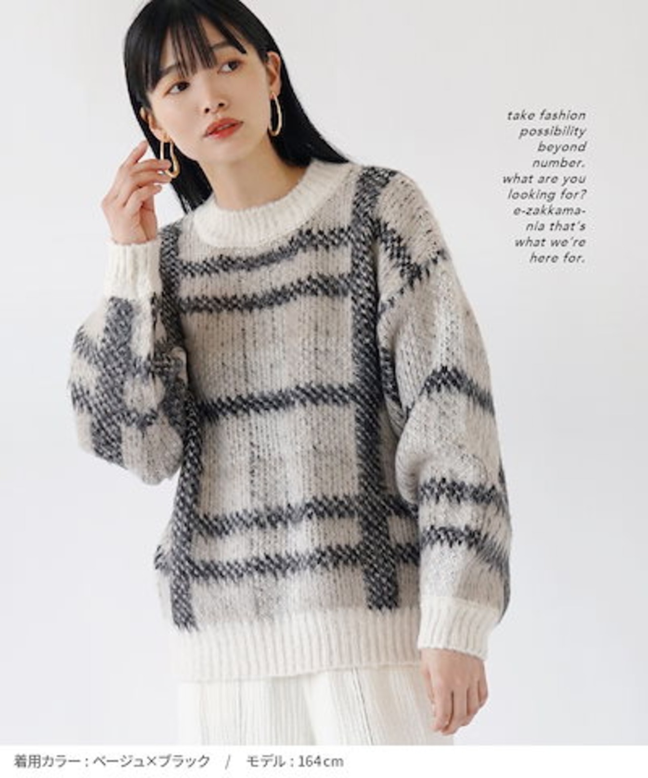 zootieニット レディース / ワイド で旬な着こなしにピッタリ トップス セーター ニットウェア 長袖 長そで 丸首 クルーネック チェック 柄 大きいサイズ 大人 秋 zootie(ズーティー):BIGチ