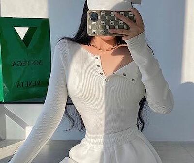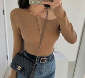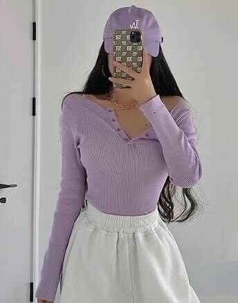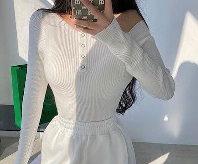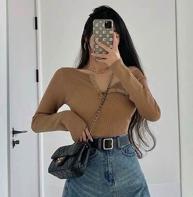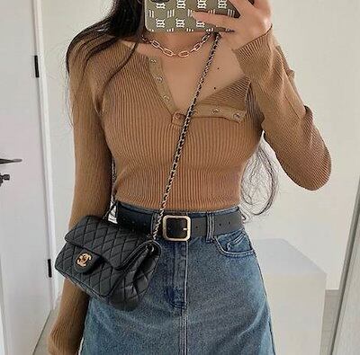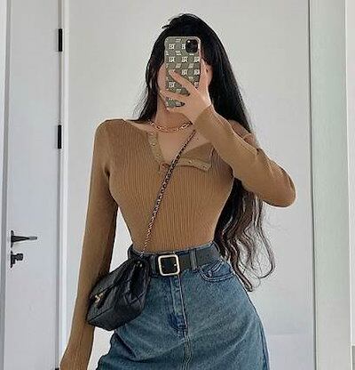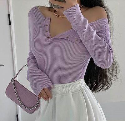 個性的 レディース トップス ニット セーター 長袖 Vネック タイト スリム 細身 ストリート