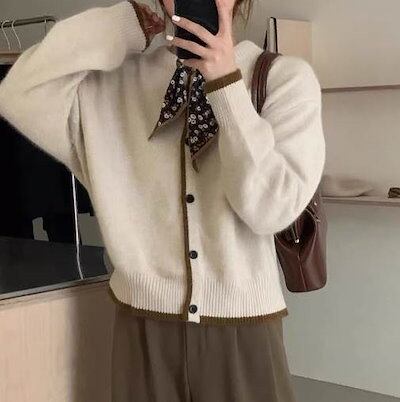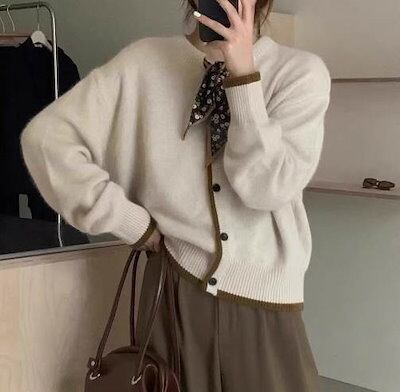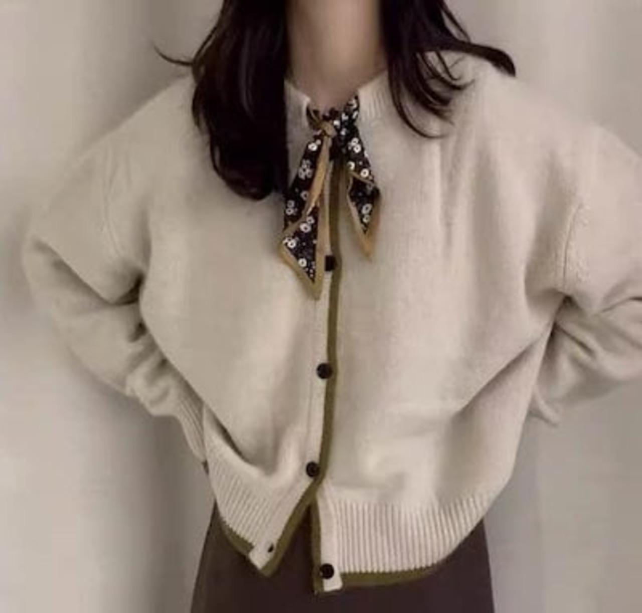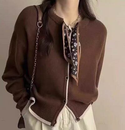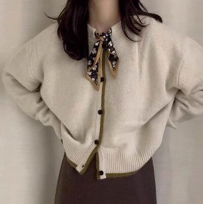 レディース トップス ニット カーディガン 長袖 ボウタイ リボン ボタン レトロ クラシカル 学生風