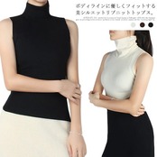 タートルネック ノースリーブニット レディース タイト ニット タンクトップ 袖なし ニット 春秋冬 ハイネック リブニット セーター 通勤 オフィス