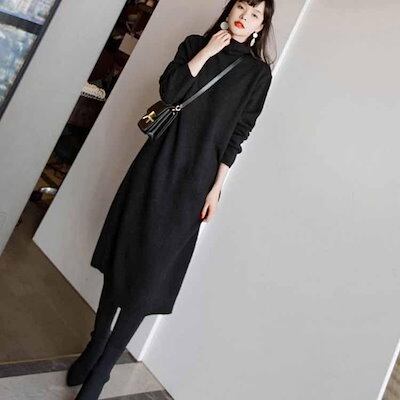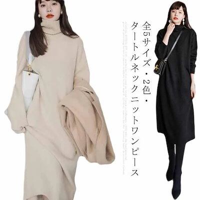 タートルネックセーター ! ワンピース タートルネック ロング ワンピース ワンピ マキシ丈 長袖 ロングワンピース セーター レディ