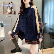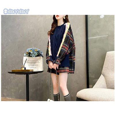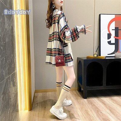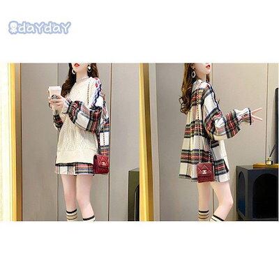 セーター ブラウス トップス 長袖コート コート レディース ロング丈 長袖 ショート Uネック チェック ゆったり 着痩せ シンプル きれいめ 新品 新作 秋