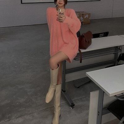 トップス セーター シャギー レディース きれいめ カジュアル おしゃれ 長袖 大人 可愛い グリーン 緑 ピンク ホワイト 白 ブルー 青 ブラック 黒 春 秋