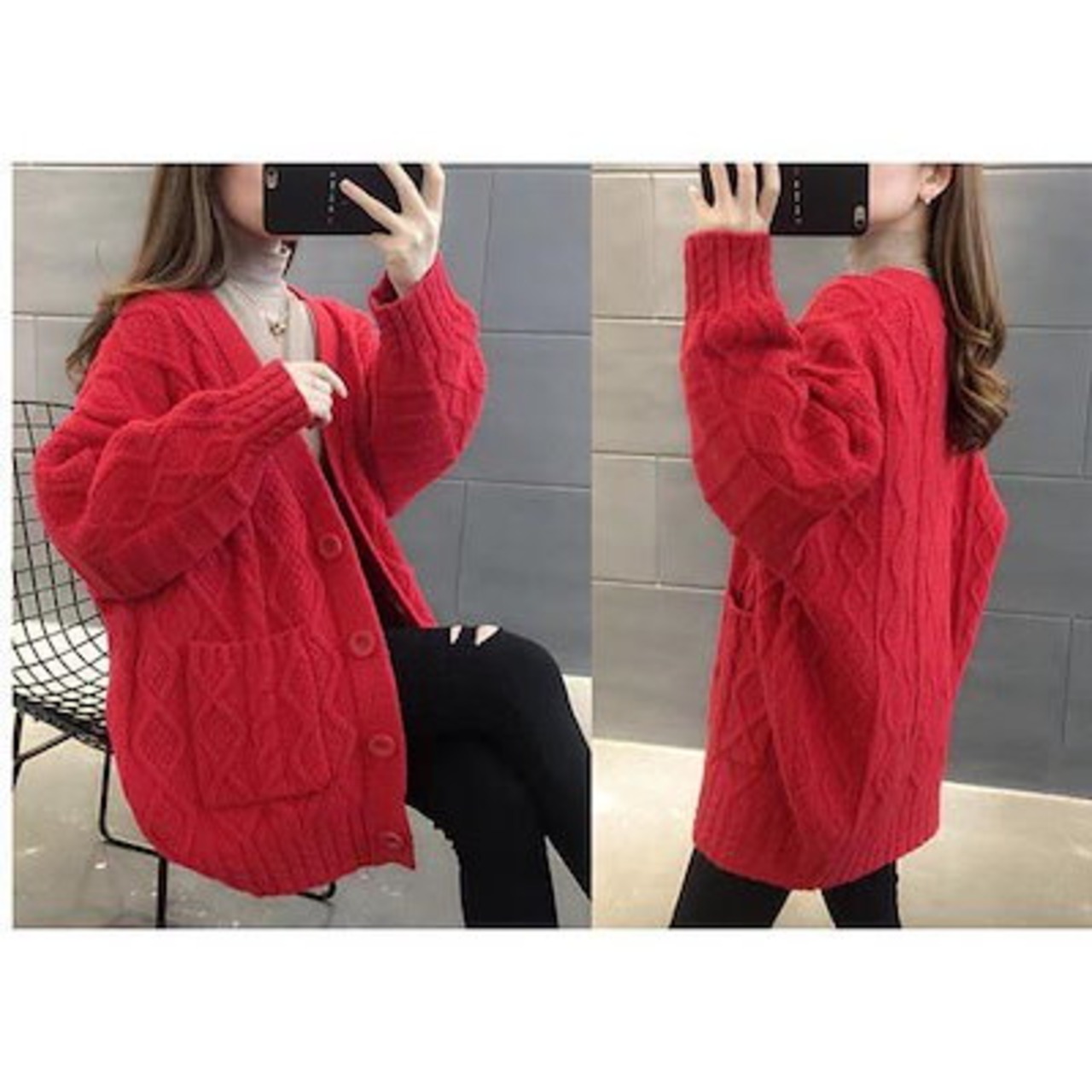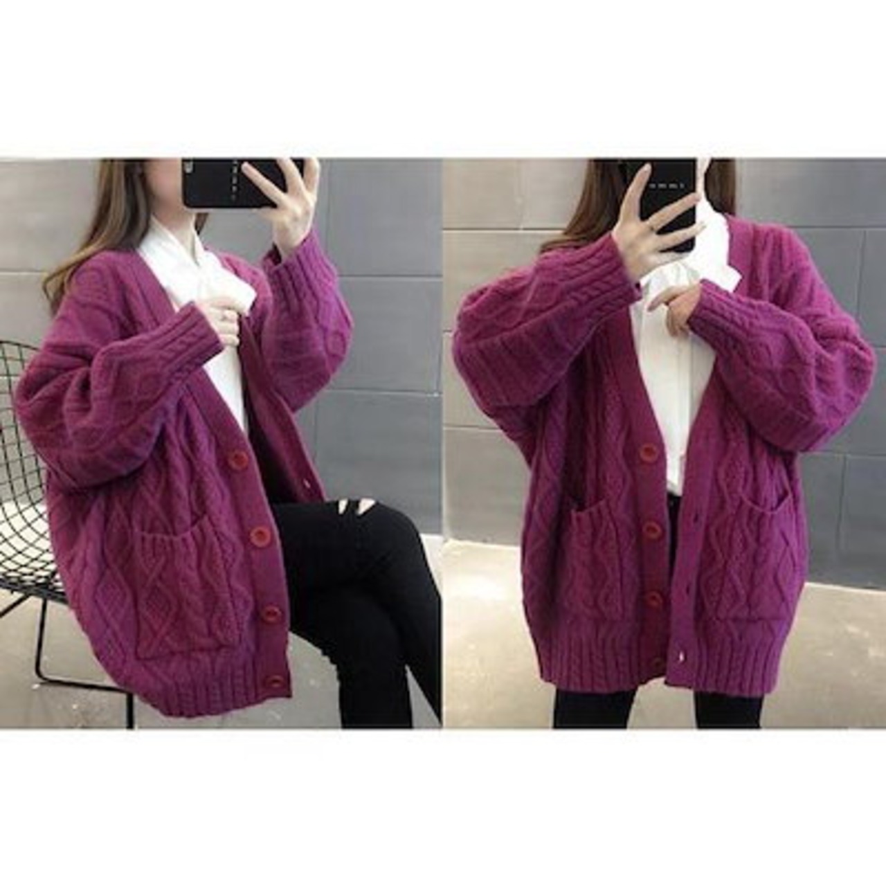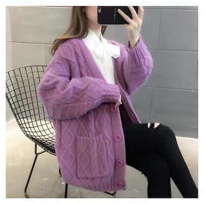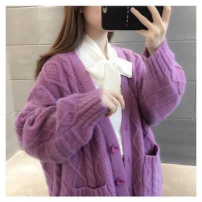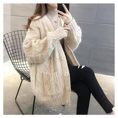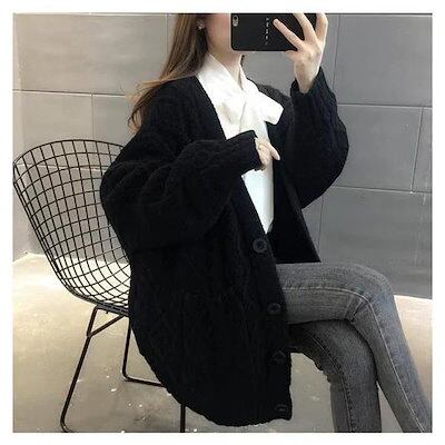 ざっくり カーディガン セーター ケーブル編み ロングカーデ 毛糸 レディース 前開き トップス 長袖 無地 ゆったり 春 体型カバー 厚手 シンプル d