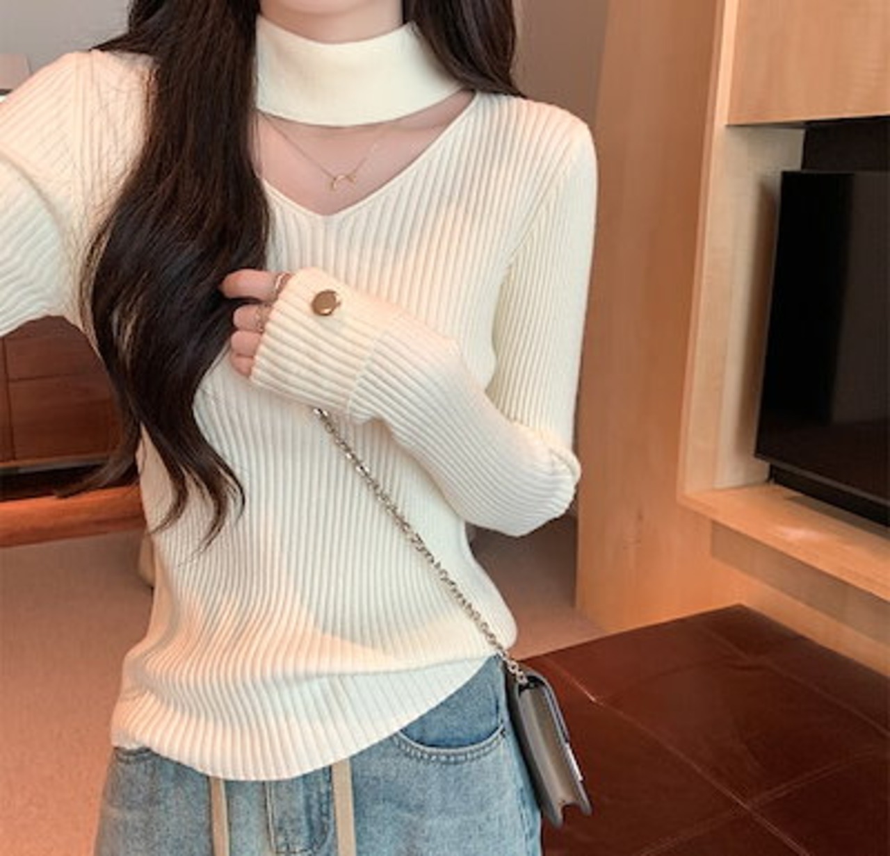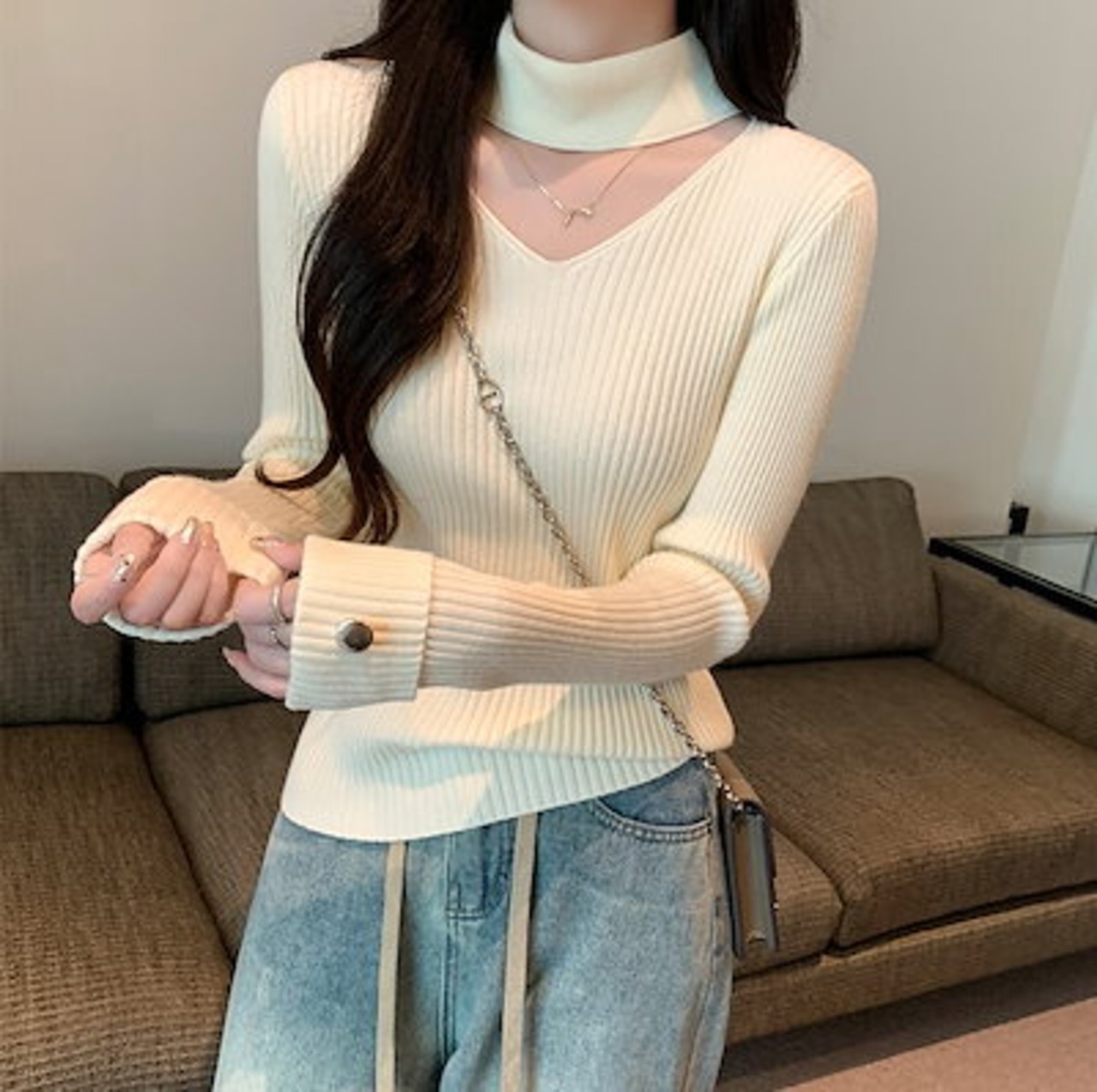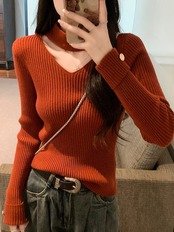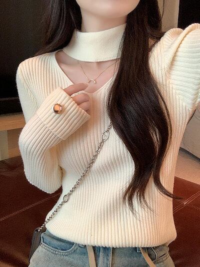 レディース トップス ニット セーター 長袖 Vネック フェミニン かわいい 大人可愛い きれいめ シンプル カジュアル ベーシック ロマンティック ナチュラル 無地 秋 冬 デート お出かけ