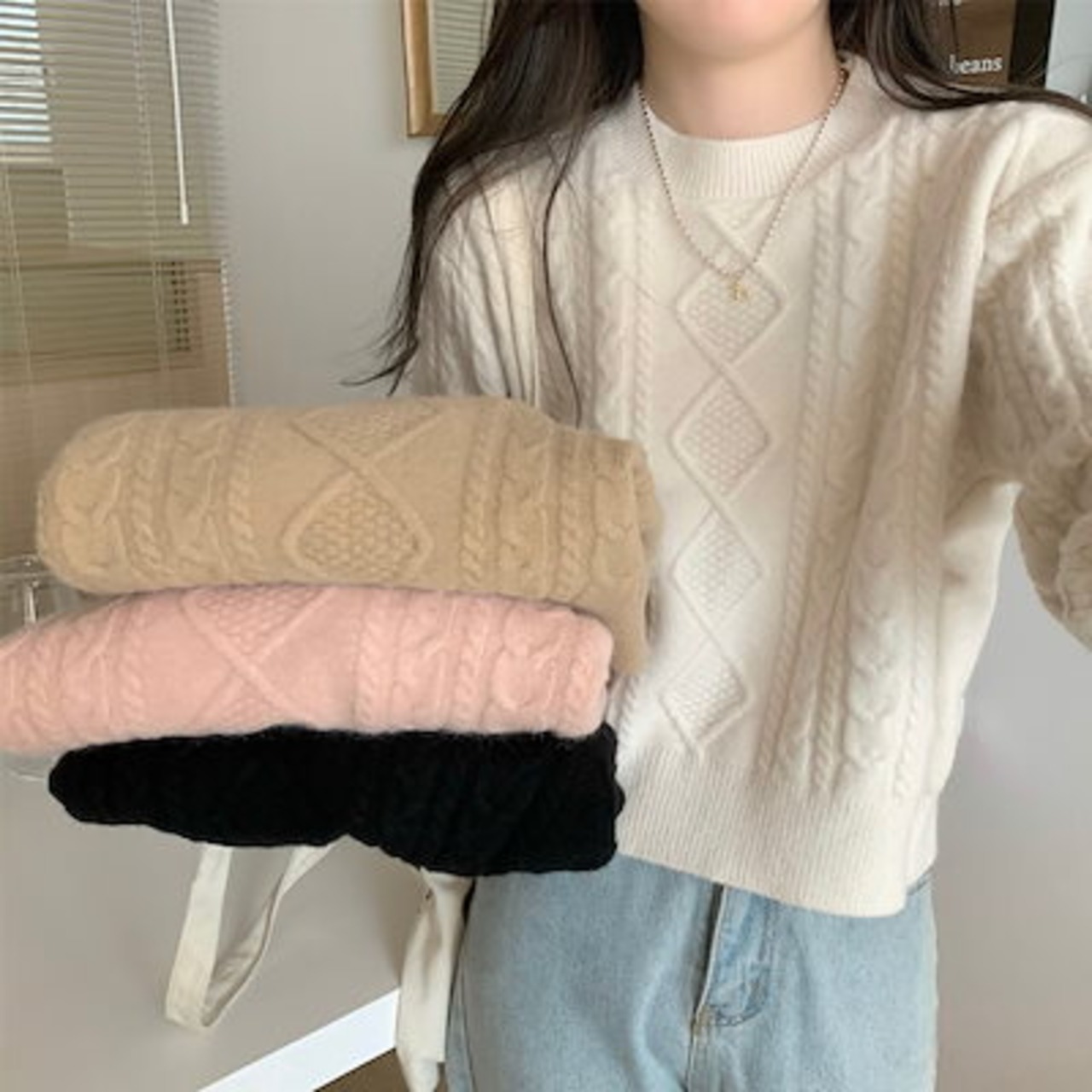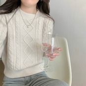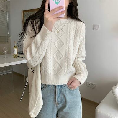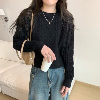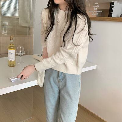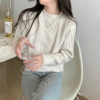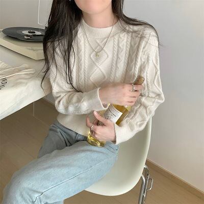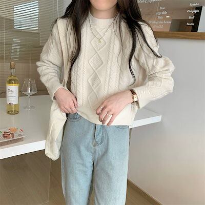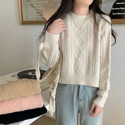 レディース トップス ニット セーター 長袖 クルーネック フェミニン 刺繍 かわいい 大人可愛い きれいめ シンプル カジュアル ベーシック ロマンティック ナチュラル 無地 秋 冬 デート