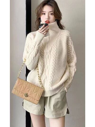 レディース トップス ニット セーター 長袖 タートルネック フェミニン 刺繍 かわいい 大人可愛い きれいめ シンプル カジュアル ベーシック ロマンティック ナチュラル 無地 秋 冬 デート