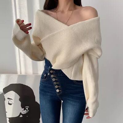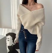 レディース トップス ニット 長袖 Vネック フェミニン かわいい 大人可愛い きれいめ シンプル カジュアル 上品 おしゃれ かっこいい こなれ感 ラフ ガーリー ルーズ 個性的 エレガント モダン