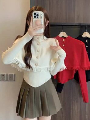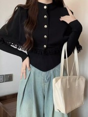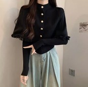 レディース トップス ニット セーター 長袖 ハイネック 切り替え ドレープ フェミニン リブ 異国風 ボタン ニット 伸縮性 かわいい 大人可愛い きれいめ シンプル カジュアル 上品 おしゃれ