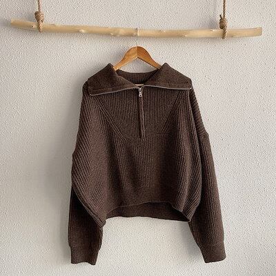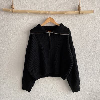 ジップアップ セーター レディース トップス ニット 長袖 襟付き フェミニン ニット 大人可愛い きれいめ シンプル カジュアル レトロ 個性的 存在感 都会的 カレッジ風 無地 春 秋 冬 通学