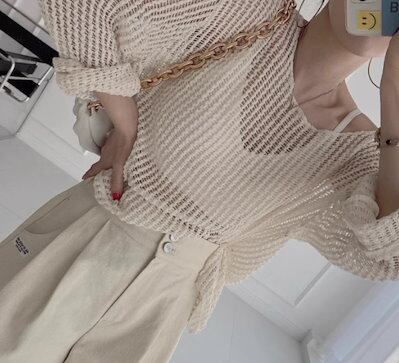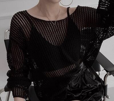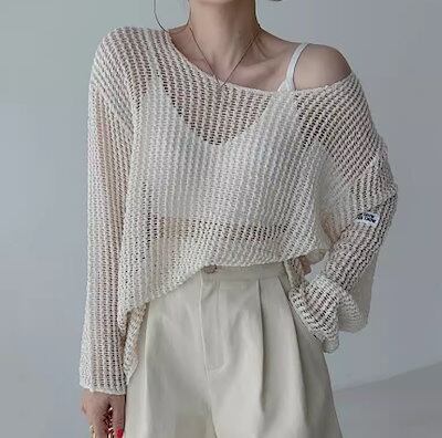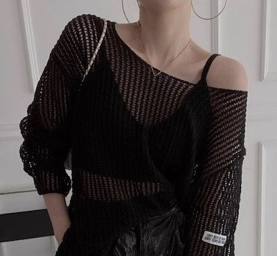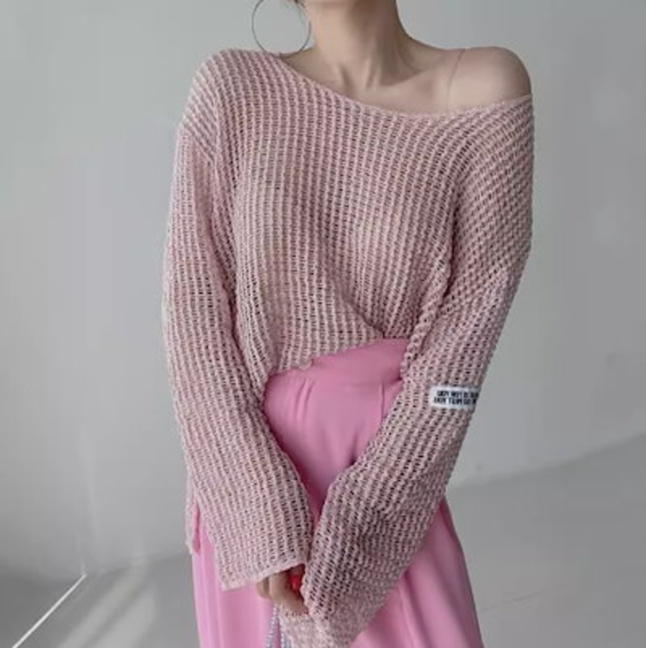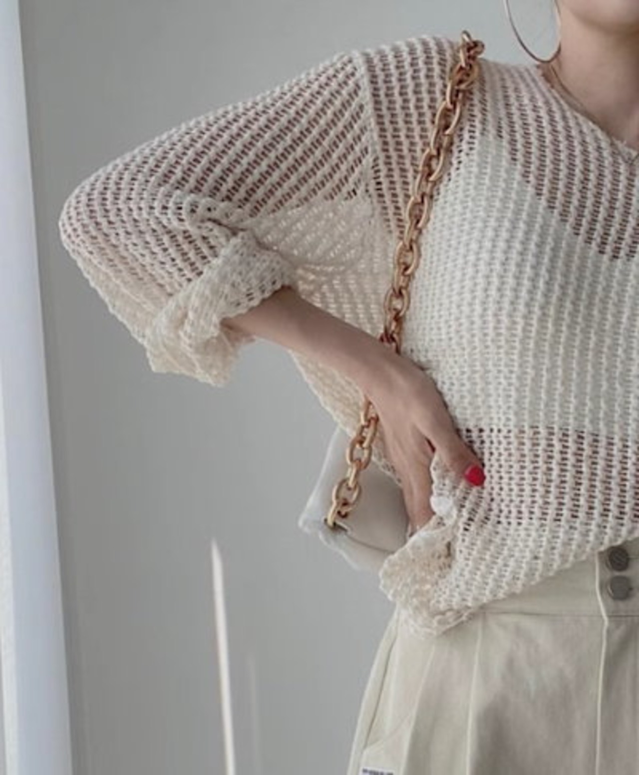 レディース トップス ニット プルオーバー 長袖 ラウンドネック フェミニン 透け感 シースルー かわいい 大人可愛い きれいめ シンプル カジュアル 上品 おしゃれ かっこいい レトロ エキゾチック