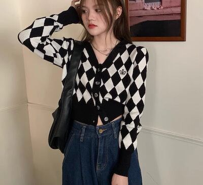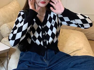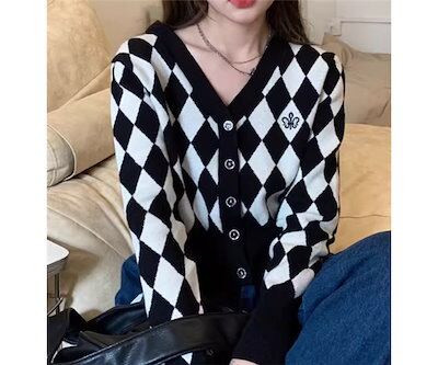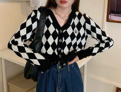 レディース トップス ニット セーター カーディガン ショート クロップド丈 長袖 Vネック 前開き ボタン かわいい 大人可愛い シンプル カジュアル 上品 おしゃれ かっこいい レトロ