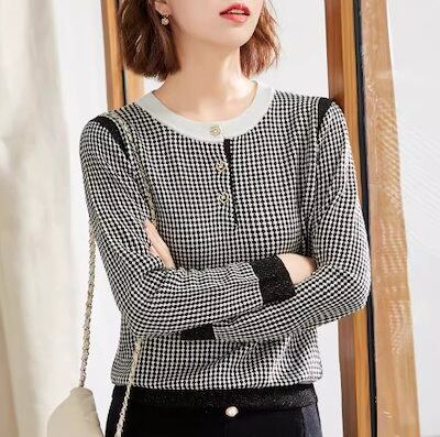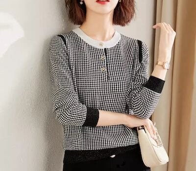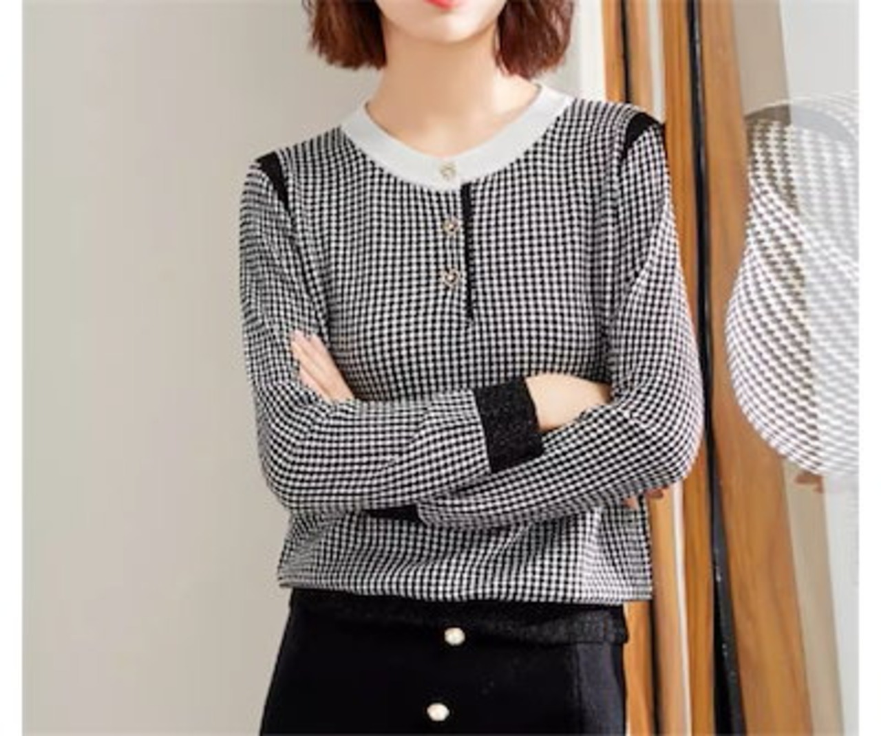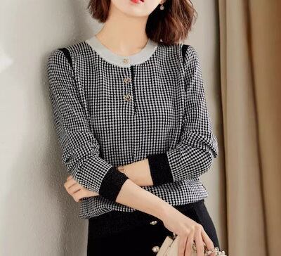 レディース トップス ニット セーター プルオーバー ミドル丈 長袖 ラウンドネック フェミニン 異国風 ボタン かわいい 大人可愛い きれいめ 上品 おしゃれ かっこいい こなれ感 クール