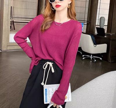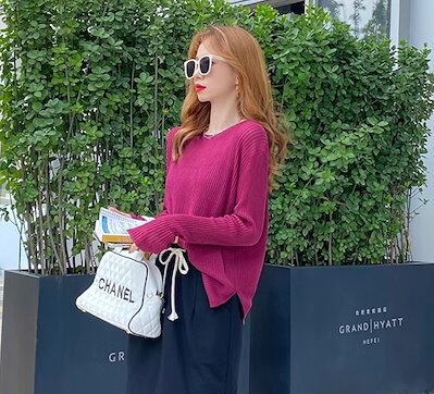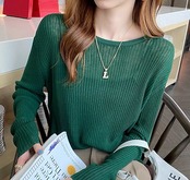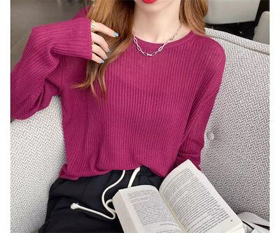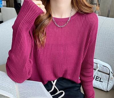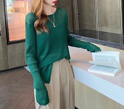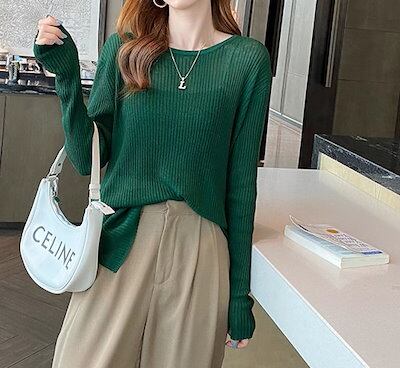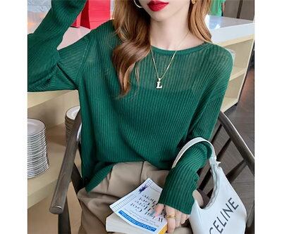 レディース トップス ニット セーター インナー ミドル丈 長袖 ラウンドネック 透け感 薄手 かわいい 大人可愛い きれいめ シンプル カジュアル おしゃれ こなれ感 クール エレガント 抜け感
