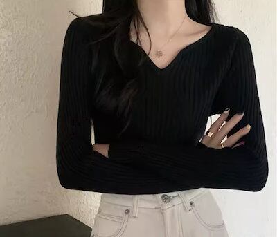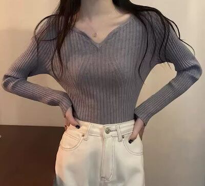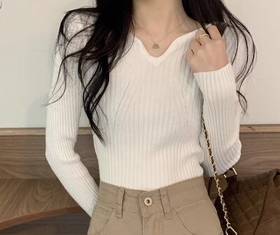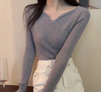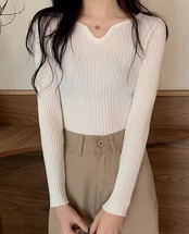 レディース トップス ニット セーター プルオーバー ショート クロップド丈 長袖 Vネック タイト スリム 細身 スマート 大人可愛い きれいめ シンプル カジュアル 上品 おしゃれ かっこいい