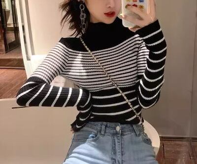 レディース トップス ニット セーター プルオーバー ミドル丈 長袖 ハイネック タイト スリム 細身 かわいい 大人可愛い カジュアル おしゃれ かっこいい こなれ感 ボーイッシュ クール キュート