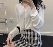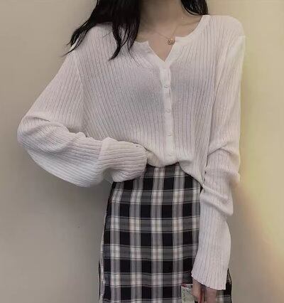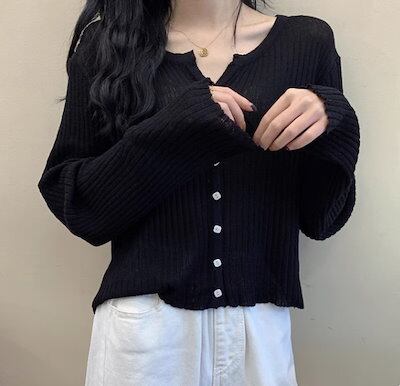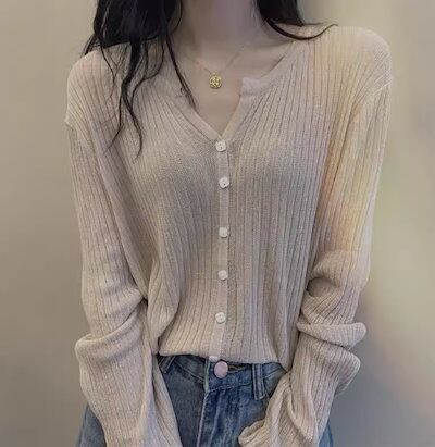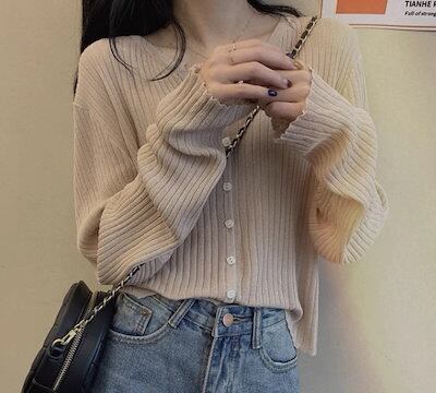 レディース トップス ニット セーター カーディガン 羽織 ショート 長袖 Vネック フェミニン 前開き ボタン 薄手 大人可愛い きれいめ シンプル カジュアル 上品 おしゃれ かっこいい レトロ