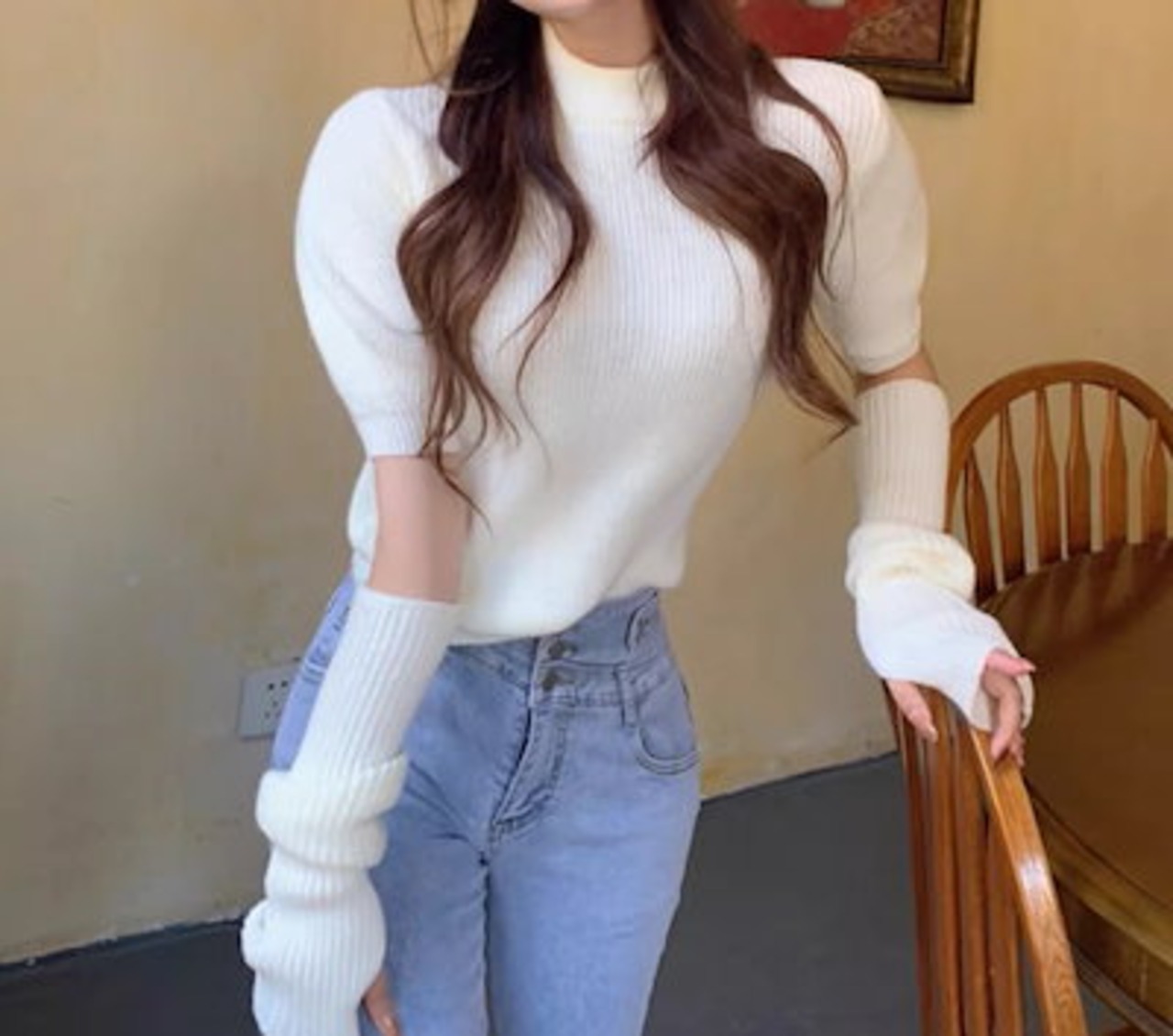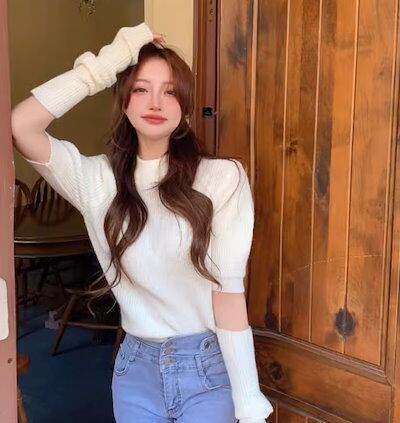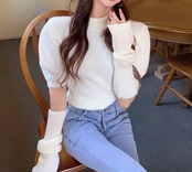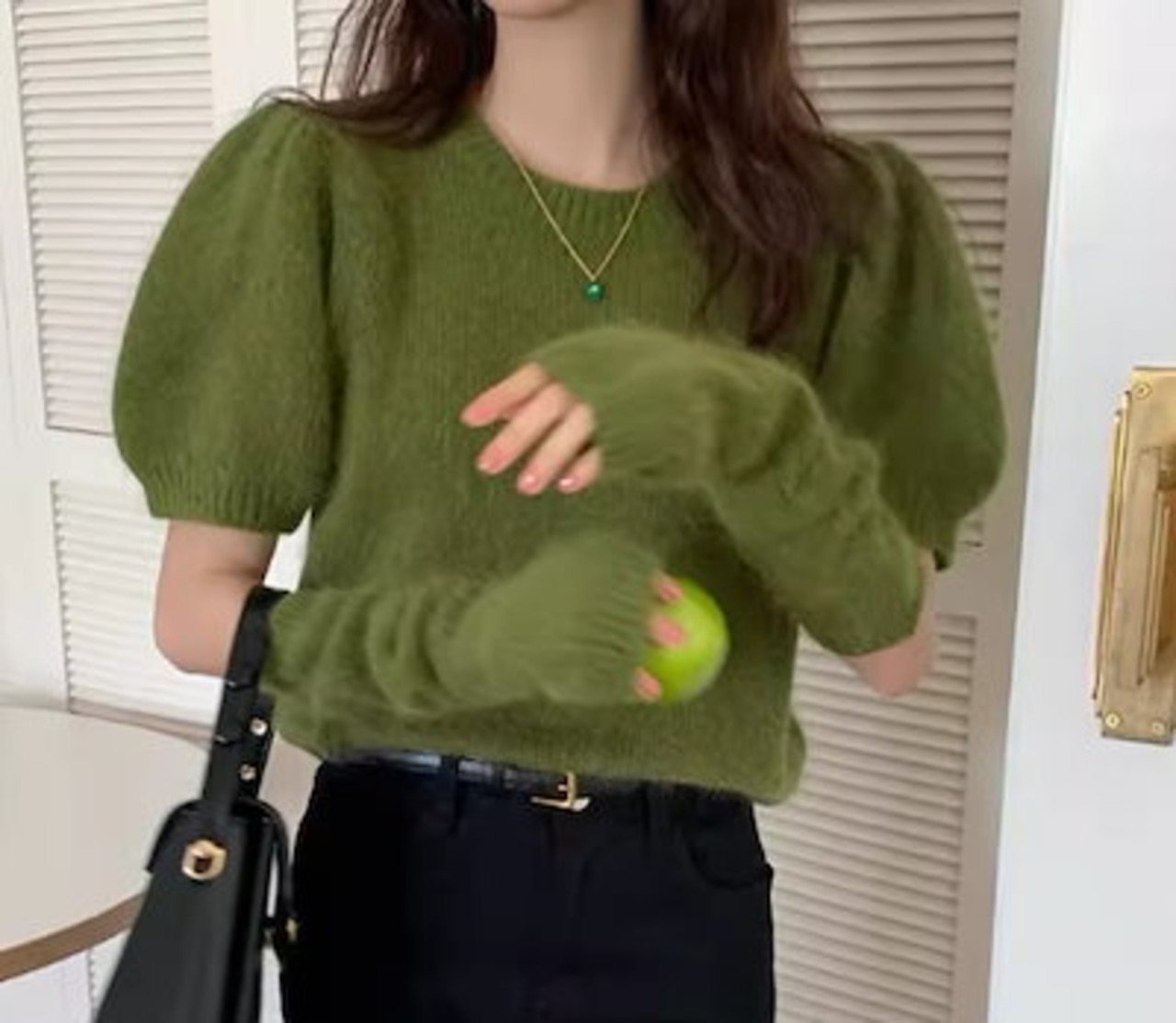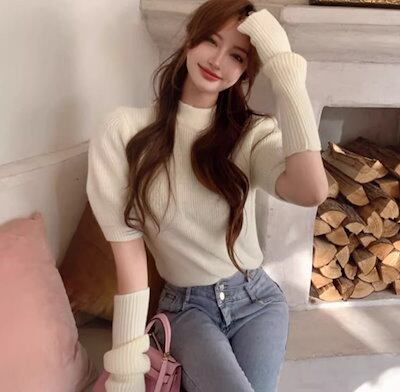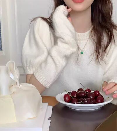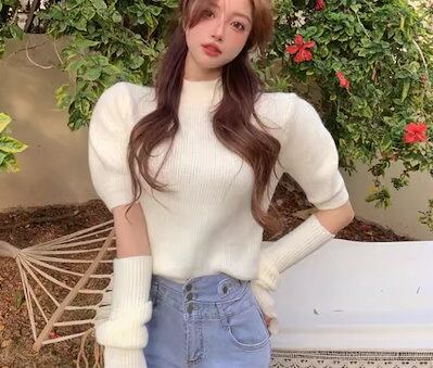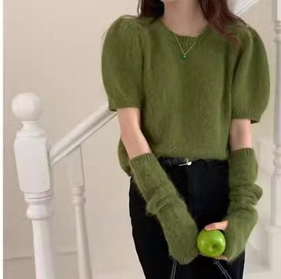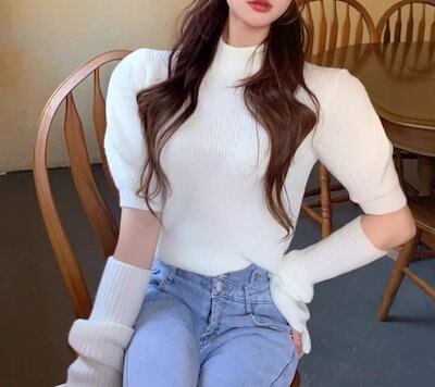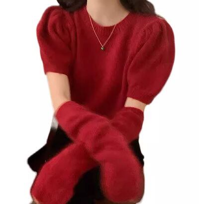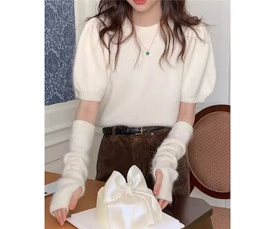 二点セット ツーピース レディース トップス ニット セーター プルオーバー ショート 半袖 長袖 パフスリーブ ラウンドネック かわいい 大人可愛い きれいめ シンプル カジュアル おしゃれ
