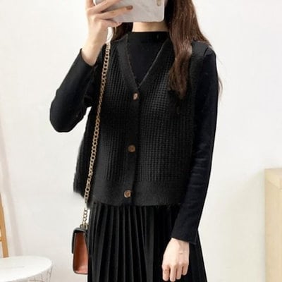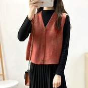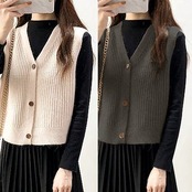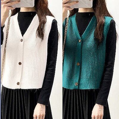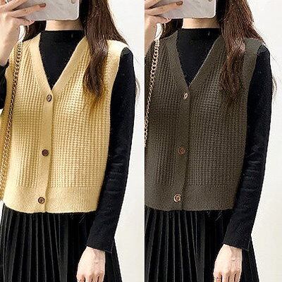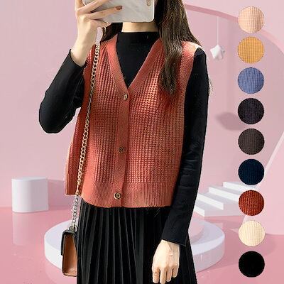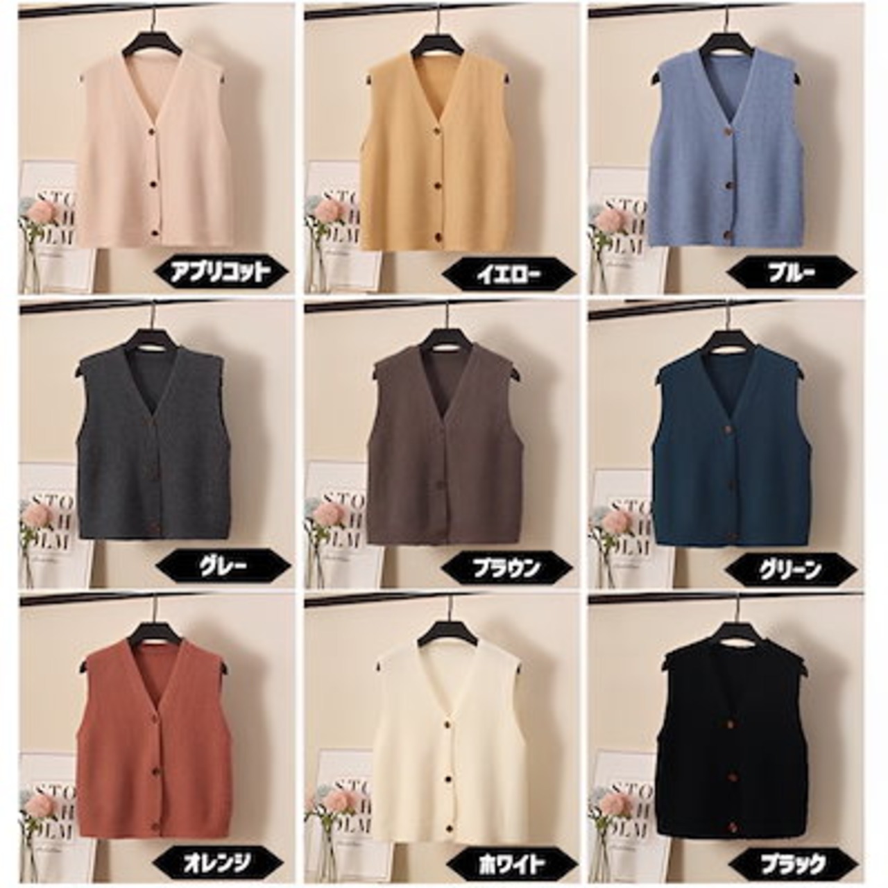 全9カラーシングルブレストニットベスト/チョッキ レディース トップス ニット セーター カーディガン ベスト アウター ミドル丈 袖なし ノースリーブ Vネック ストレート フォーマル スマート