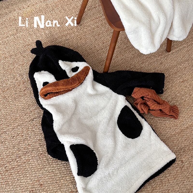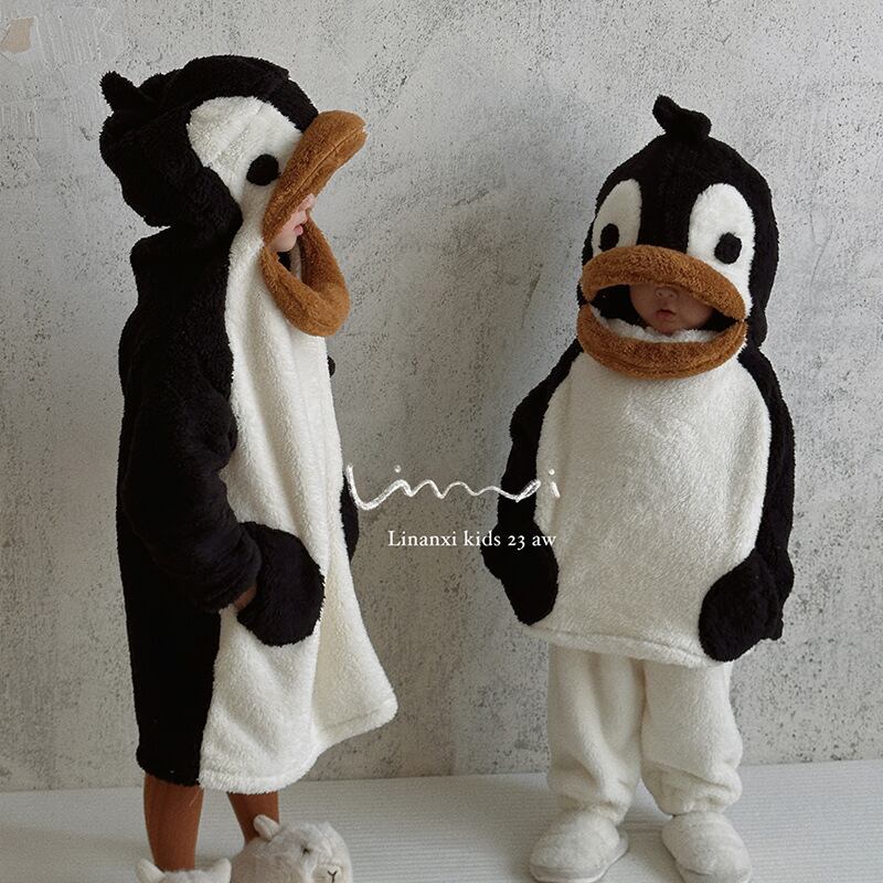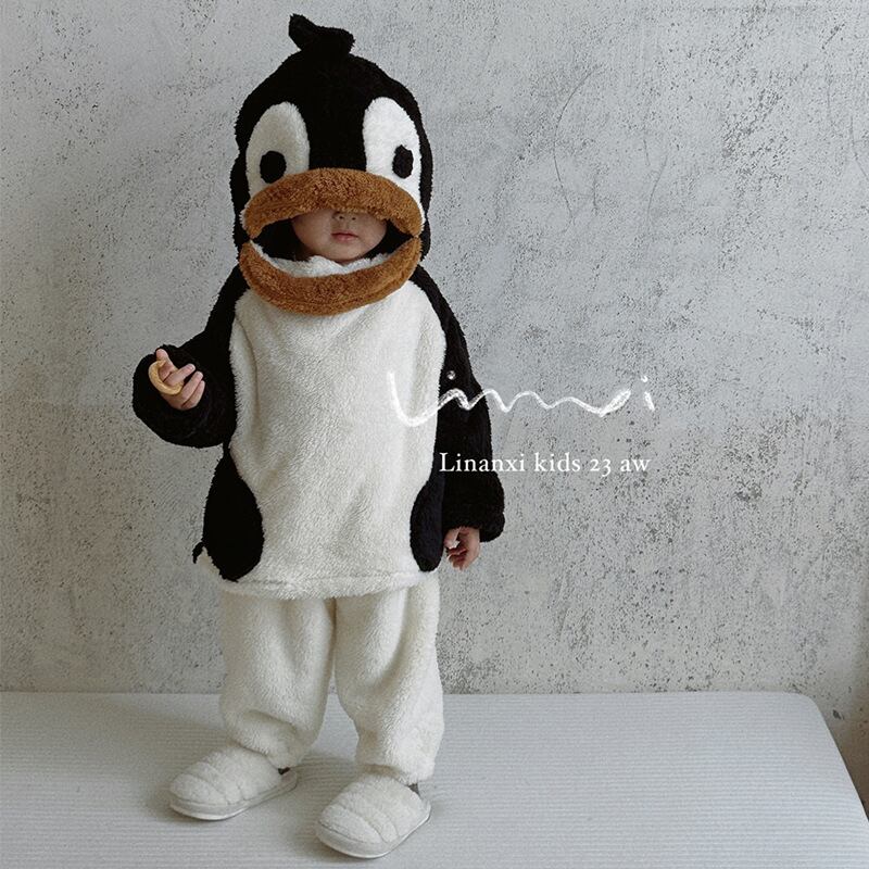 ルームウエア パジャマ キッズ 子供 もこもこ ペンギン 起毛 暖かい かわいい 長袖 女の子 男の子 春 秋 冬