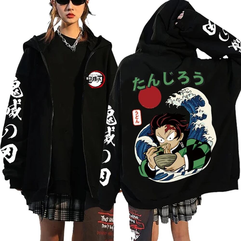 女性のためのジッパー付きスウェットシャツ,フード付きスウェットシャツ,アニメーション,ユニセックス,ヒップホップ,ストリートウェア,nezukamadoプリントy2k,2023 パーカー ジャージ y2k T240908170236_16