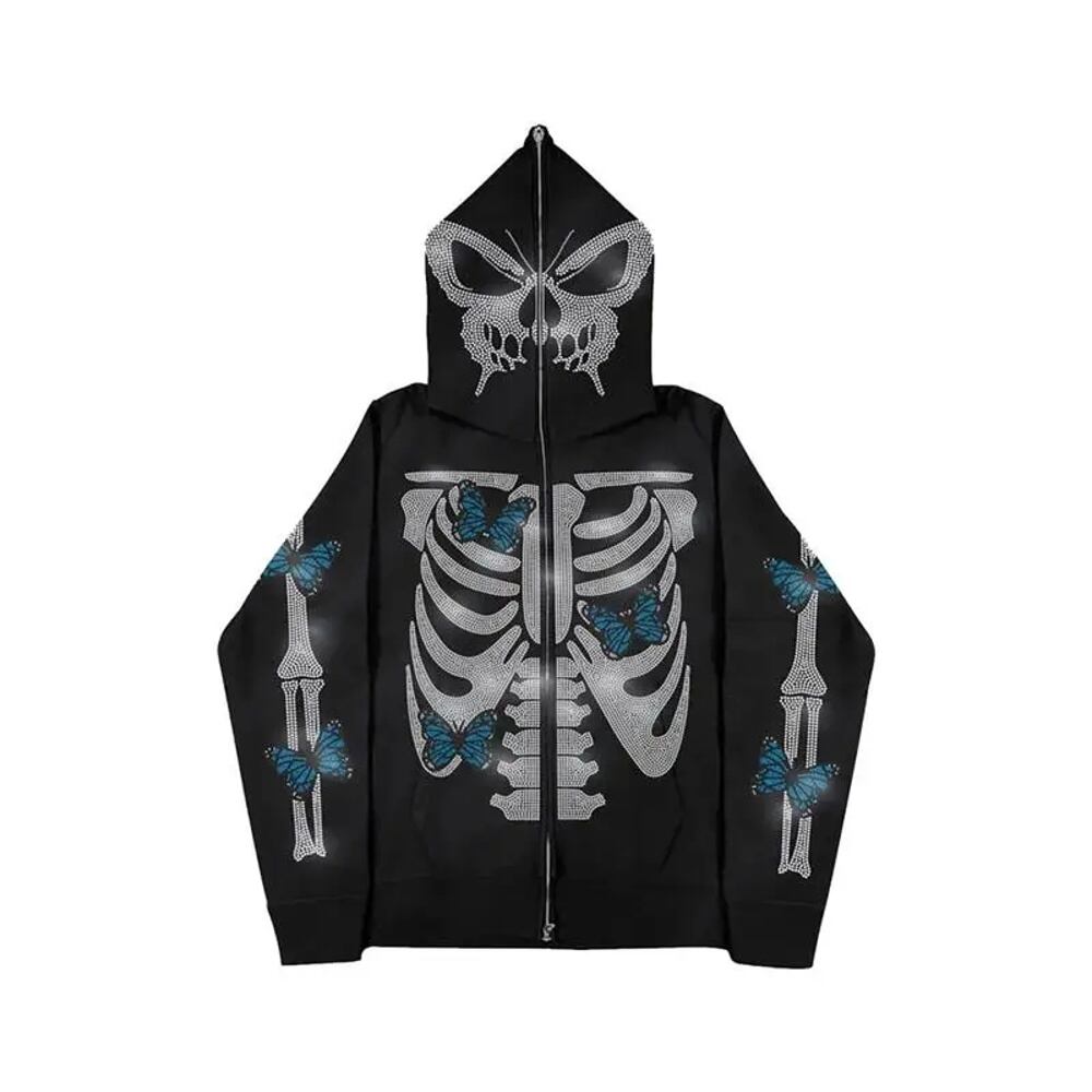 女性のためのスケルトンとバタフライラインストーンのグラフィック特大パーカー,y2kゴシックハラジュク,フルジップフード付きスウェットシャツ パーカー ジャージ y2k T240908170541_01