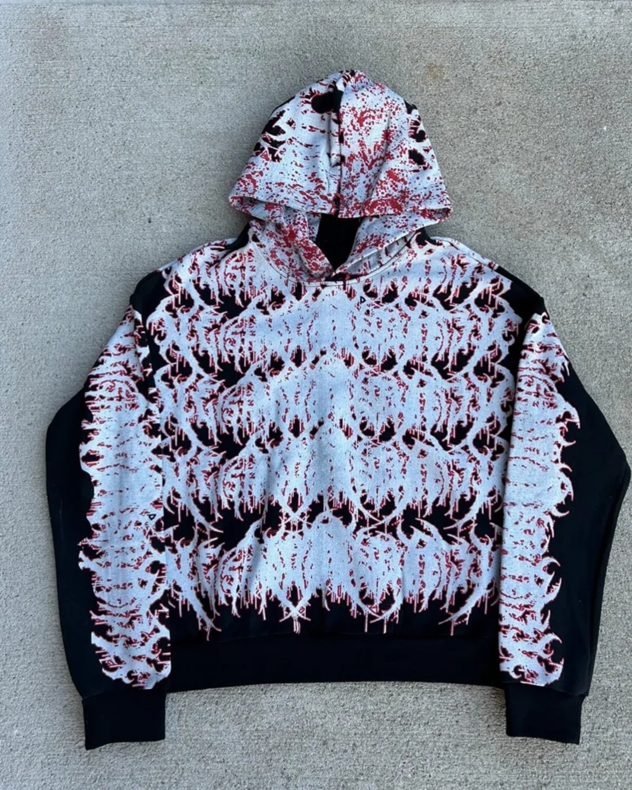 女性のゴシックパンクプリント幾何学模様のプルオーバー、ダークスタイルのパーカー、y2kヴィンテージストリートウェア、ヒップホップスウェットシャツ、カップルの服 パーカー ジャージ y2k T240908170554_09