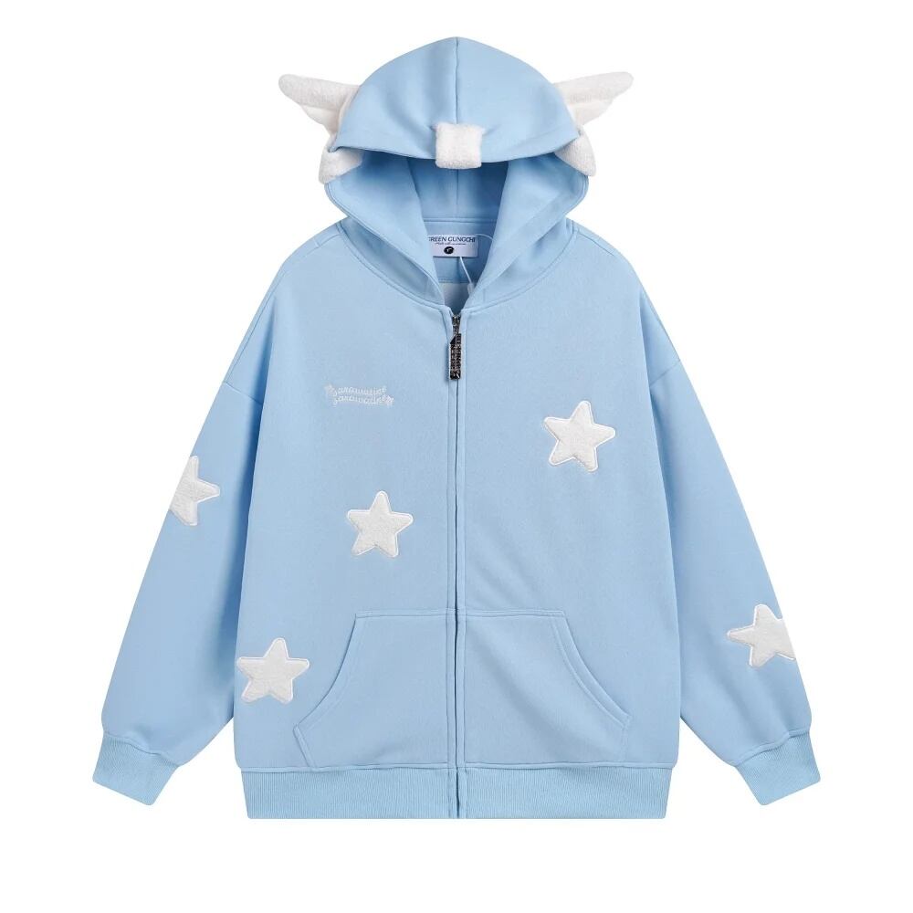 女性用長袖スウェットシャツ,フード付きスウェットシャツ,和風,カワイイコート,ジッパースターカーディガン,愛らしい,y2k,スター,秋 パーカー ジャージ y2k T240908170632_02