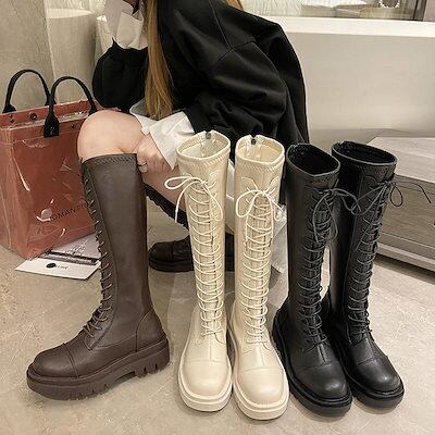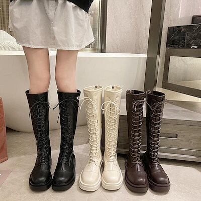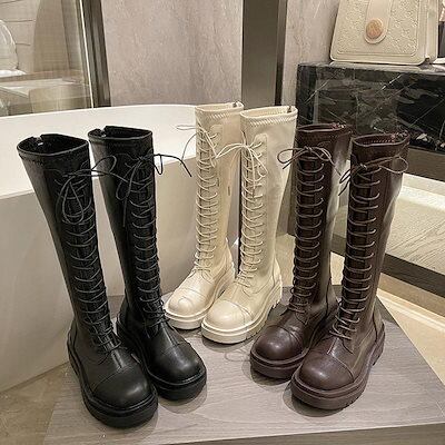 秋冬ファッション レディースショートブーツ 厚底 冬ブーツ スエード ニーハイブーツ レトロ スクエアトゥ 着痩せ 厚底 ブーツ ロングブーツ 美脚ブーツ スタイルも良く ニーハイブーツ ロングブーツ