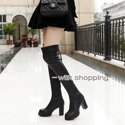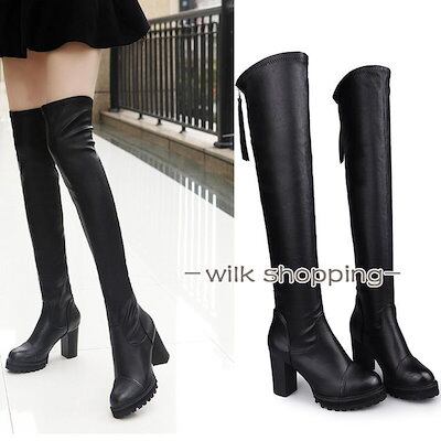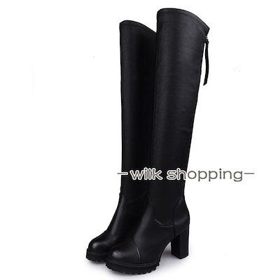 【3日以内出荷】スクエアトゥ ロングブーツ レディース ブーツ ロング丈 バックジップ ヒール