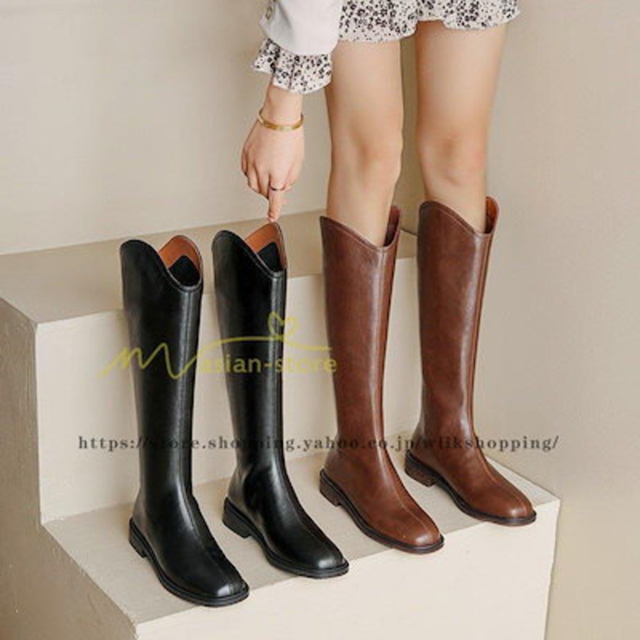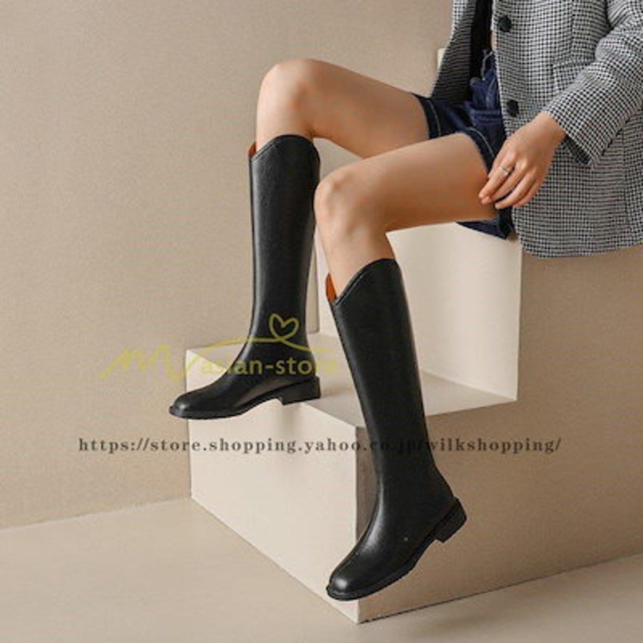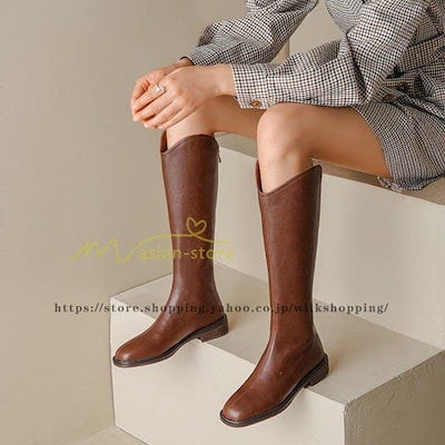 【3日以内出荷】ロングブーツ レディース ブーツ 秋冬 シューズ 靴 太ヒール チャンキーヒール 合皮ブーツ PUブーツ ロング靴 くつ 後ろファスナー COS 大人
