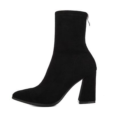 秋冬ファッション レディースショートブーツ ミドルブーツ チャンキーヒール ストレッチ サイドゴアブーツ ハイヒール ブーツ 靴